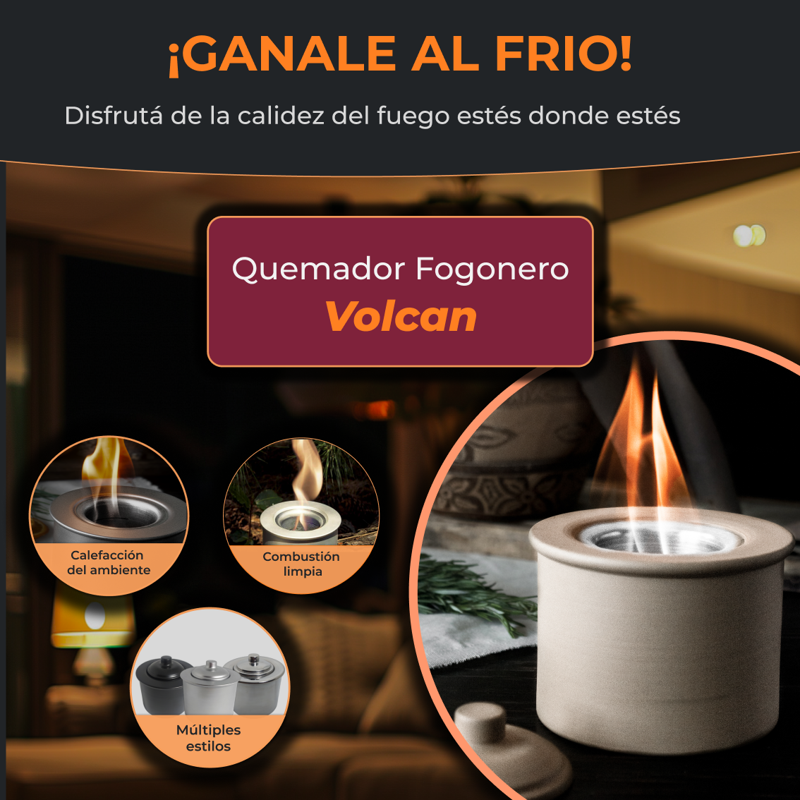 MODELO VOLCÁN: Moderno quemador a bioetanol redondo de diseño exclusivo fabricado en materiales de alta calidad. Con un diseño portátil y un sistema antiderrame basado en fibra cerámica, permite disfrutar del calor e iluminación del fuego de manera limpia y segura, en cualquier momento y lugar. Utiliza como combustible bioetanol, un alcohol derivado de materia vegetal el cual es limpio al quemar, por lo que no genera humo ni cenizas como muchos metodos tradicionales.