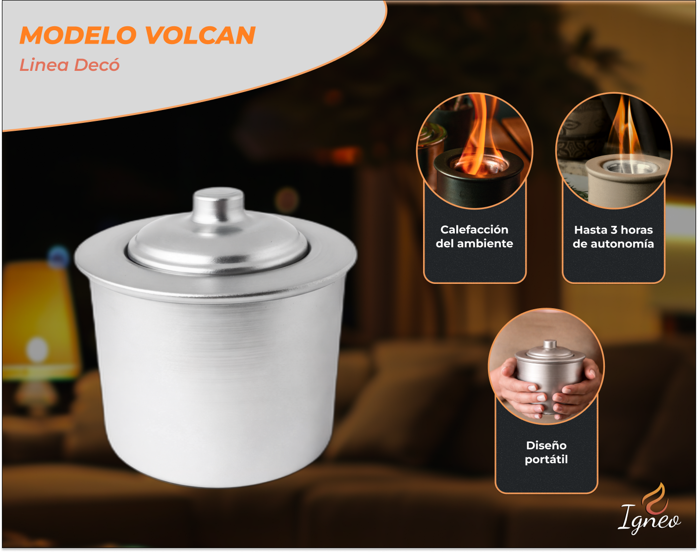 El quemador Volcán transforma cualquier ambiente en una experiencia única. Su llama suave y constante llena el espacio de una calidez envolvente, creando momentos acogedores. Ya sea en una tarde tranquila en el interior o una velada al aire libre, este fogonero añade una atmósfera cálida que invita a relajarse y disfrutar de cada instante.