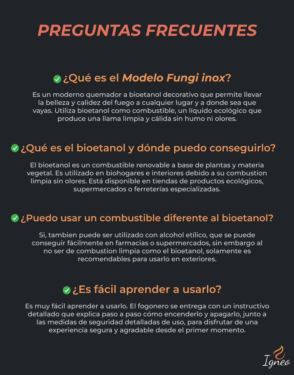 No necesitas ser un experto para disfrutar del fogonero Fungi. Su uso es extremadamente sencillo.