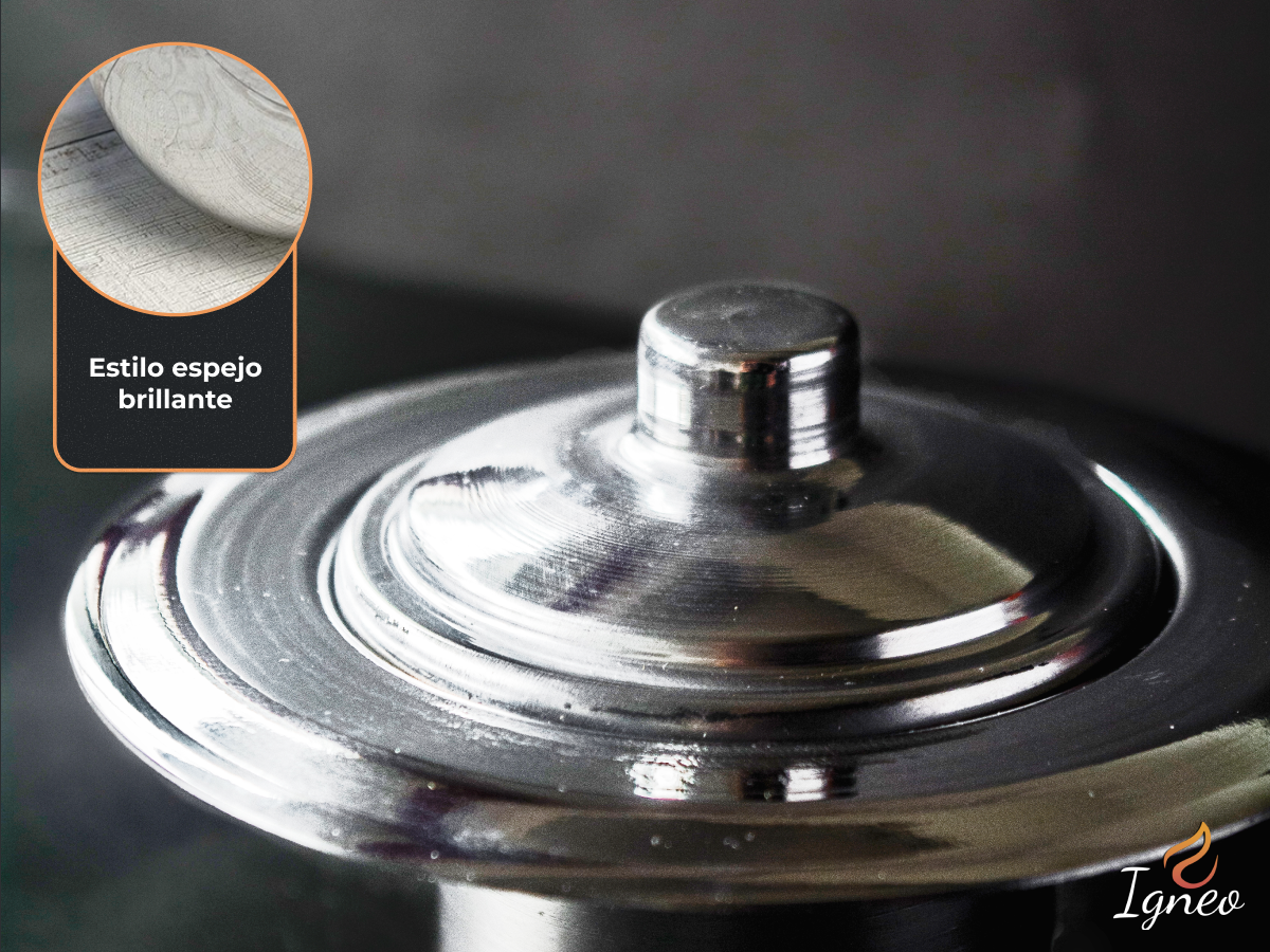 Fabricado en acero inoxidable y con un trabajo artesanal de pulido en frio, presenta un bello efecto espejo resplandeciente, ideal para realzar cualquier espacio con un estílo único y brillante.